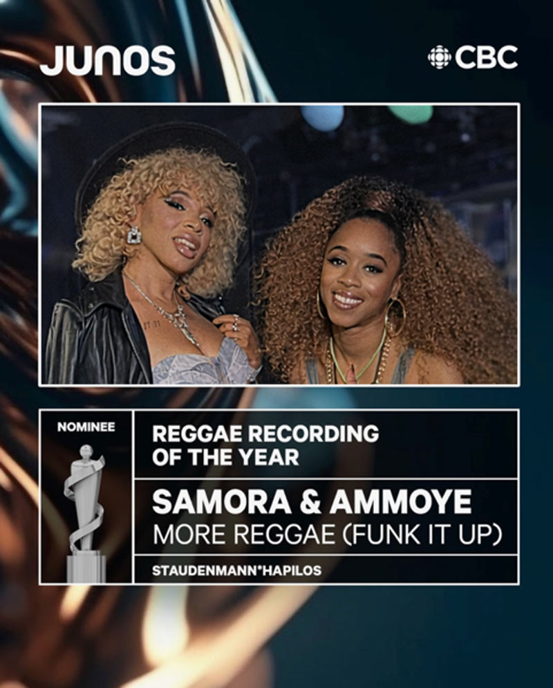 Samora & Ammoye nominated @ 2026 JUNO Award “More Reggae (Funk It Up)”
